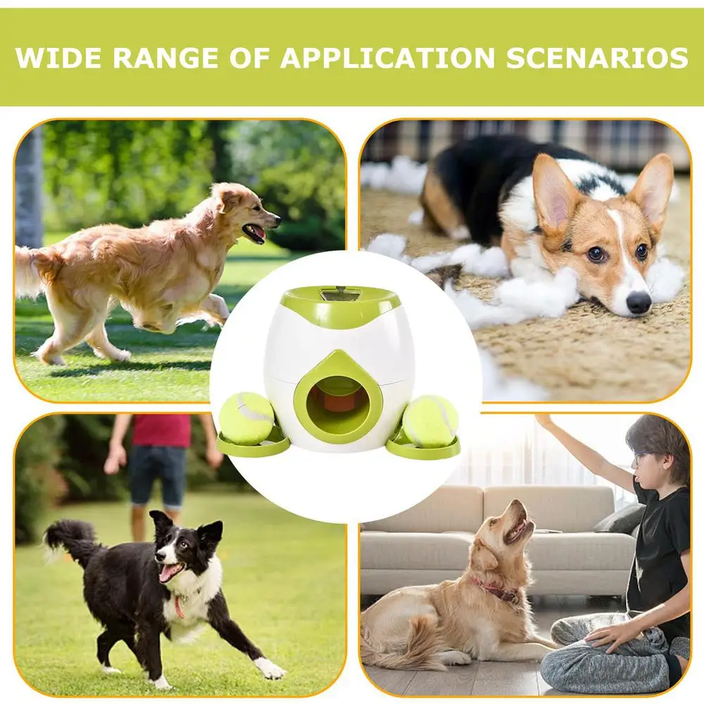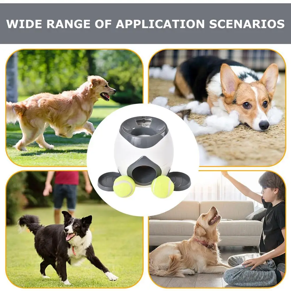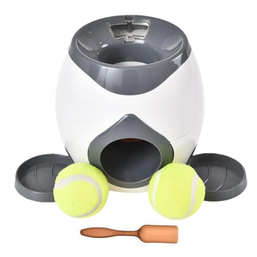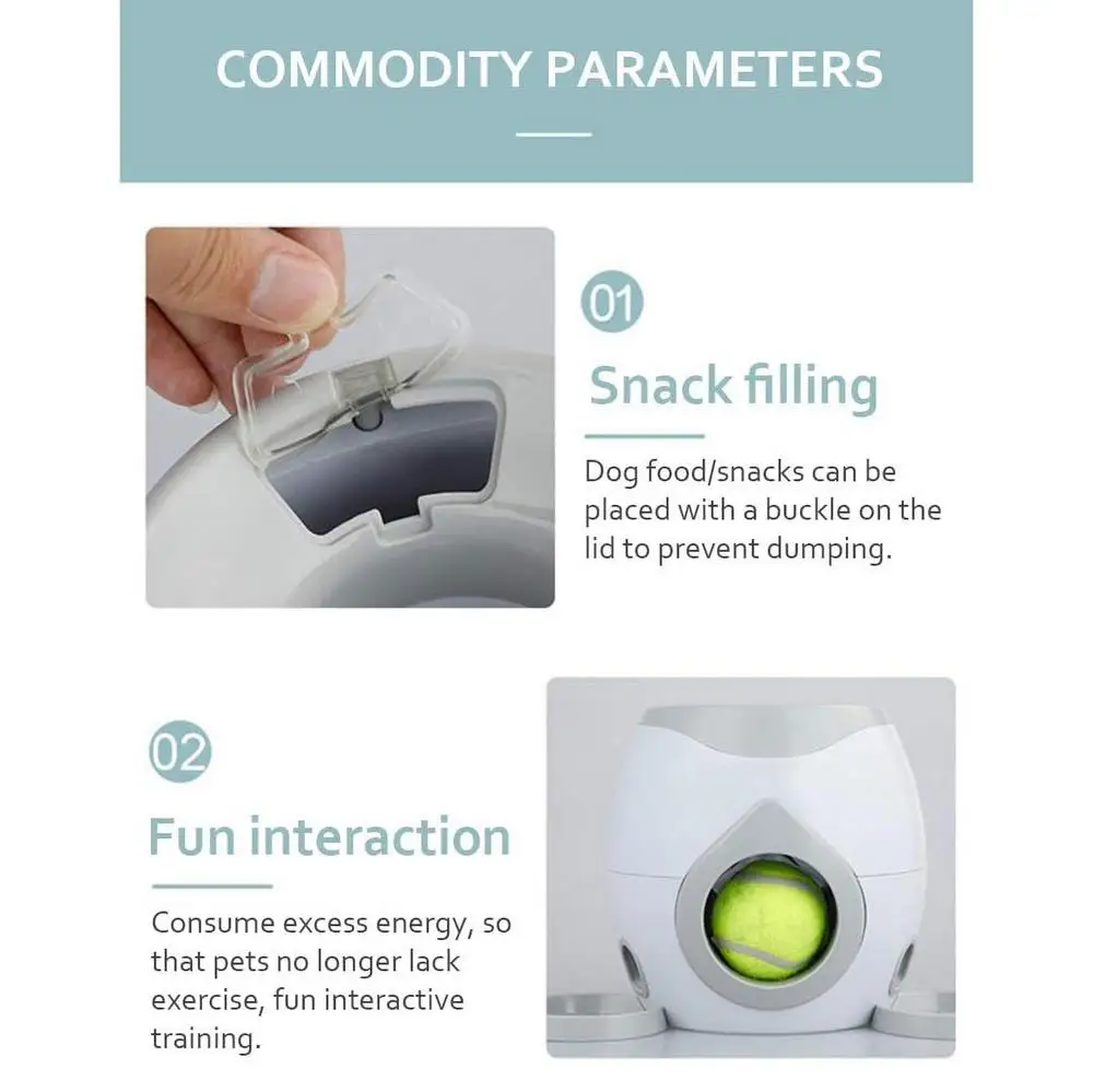 4.Progressive Playtime: Transform your dog's playtime with the innovative ball thrower that reinforces positive behavior and makes chasing games for dogs more exciting. Your furry friend can pick up the ball, then observeas it is automatically thrown and food is distributed as rewards.