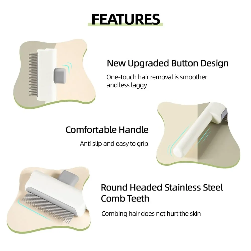 【Easy to operate & clean】Just press the button to easily remove hair from the cat brush. For convenient cleaning, just remove the accumulated hair from the brush and rinse it under running water